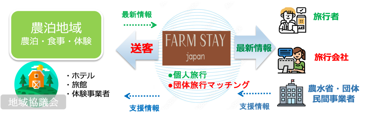 一般社団法人日本ファームステイ協会は、農泊地域への送客および商品造成の支援を目的として、農泊総合情報プラットフォーム「FARM STAY Japan」を母体とした「農泊団体旅行マッチングサイト」を3月下旬にオープンいたします。